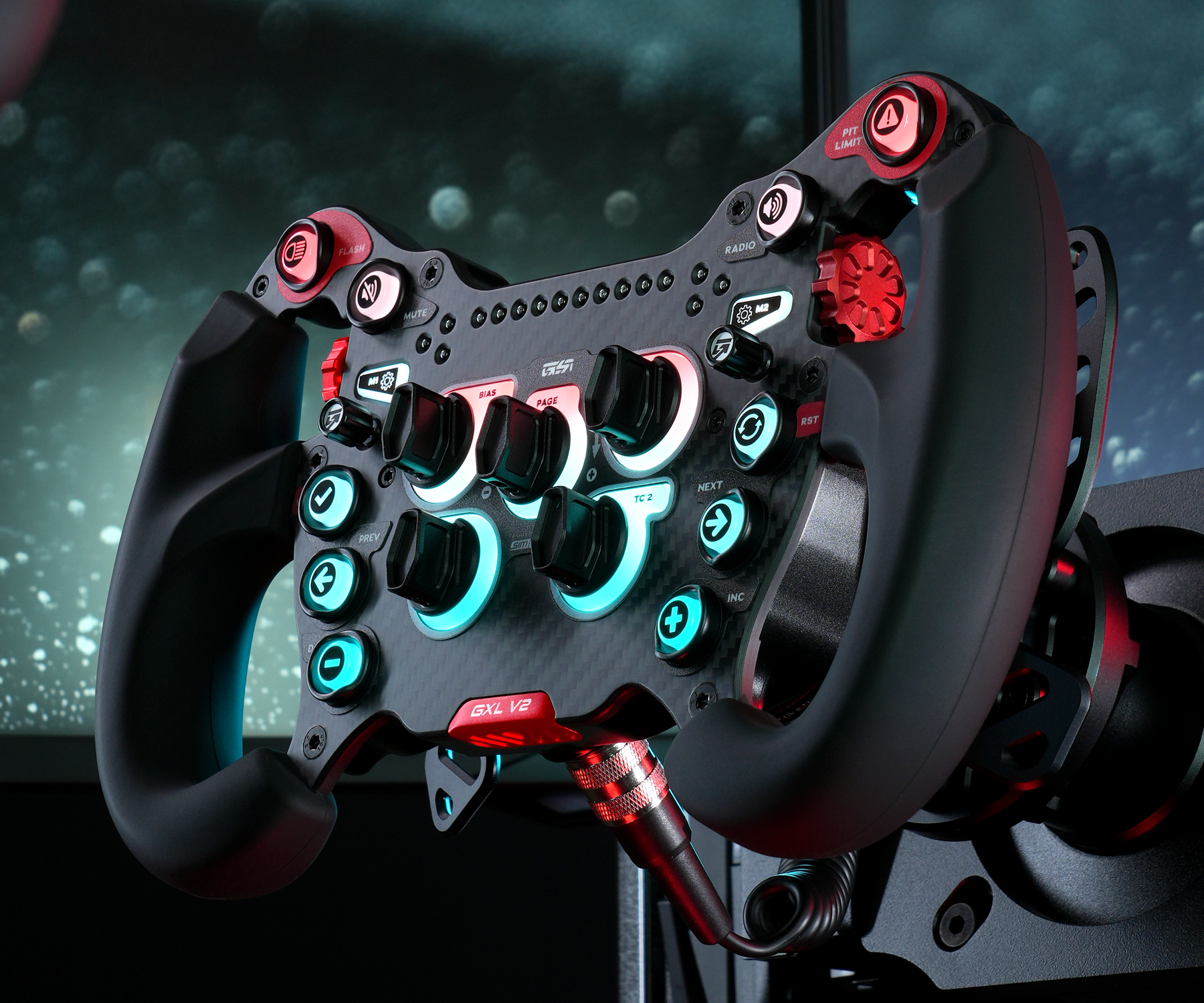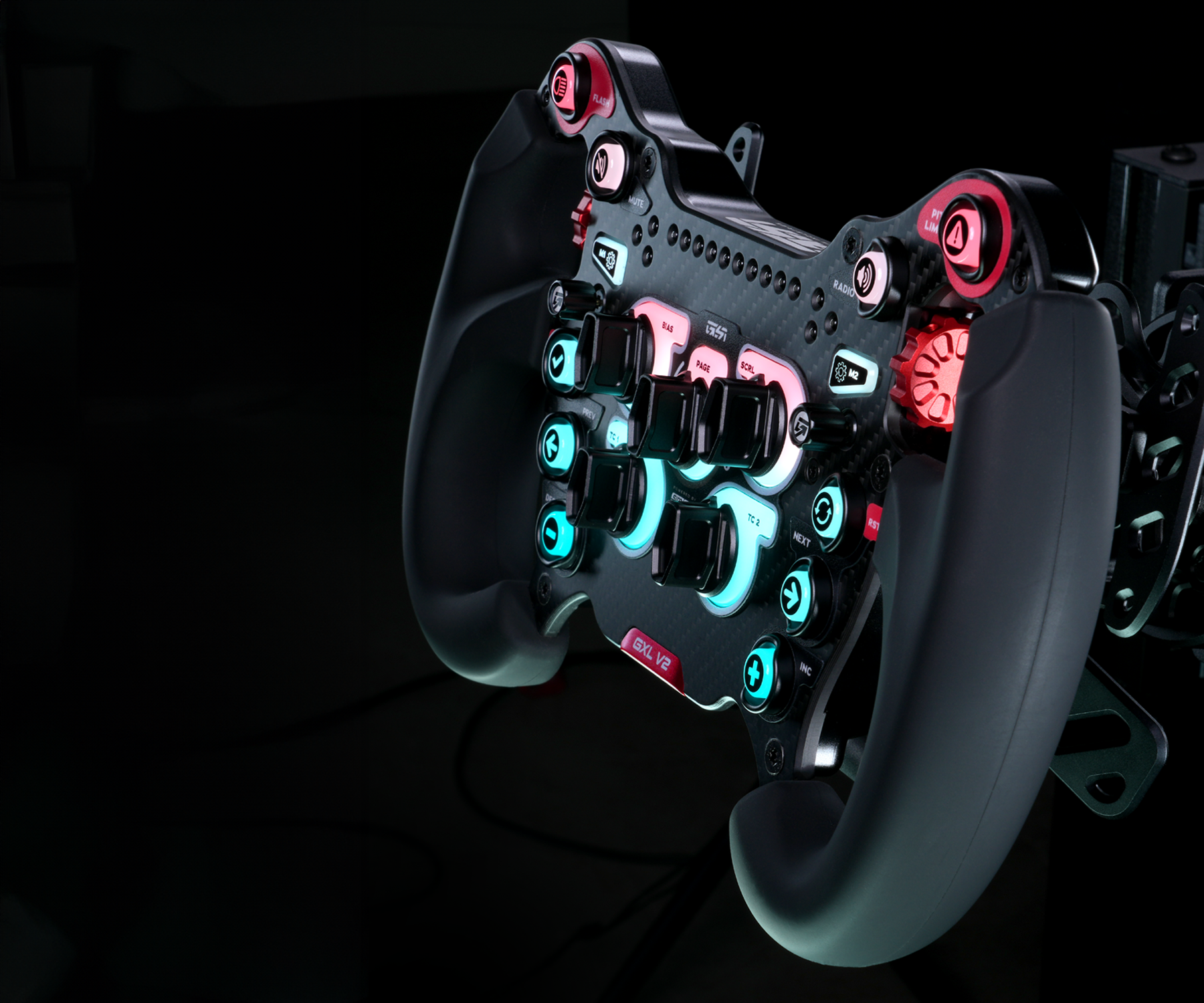 Backlit illumination comes to the GXL V2. Customize the look and feel of your wheel on-the-fly and use real-time telemetry to influence how the LEDs function.