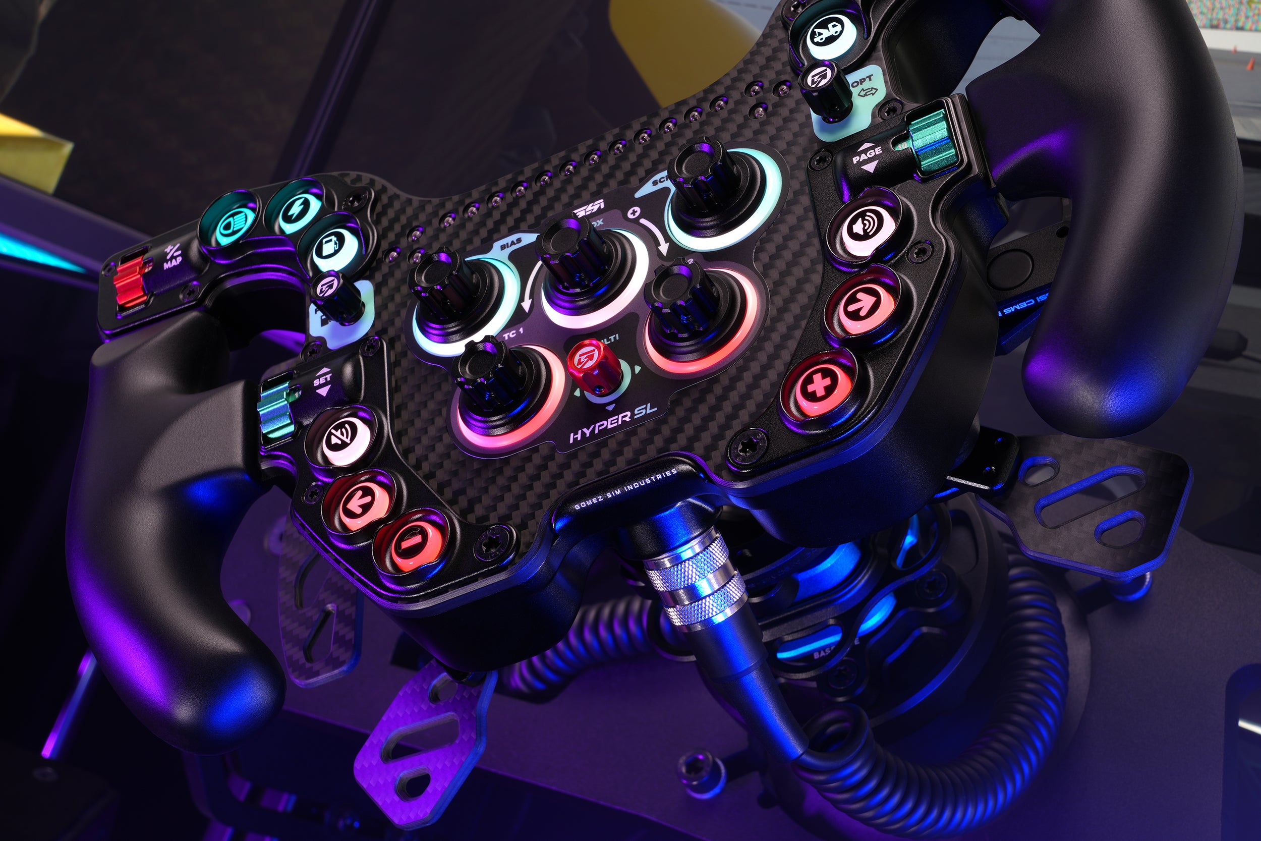 Meet the Hyper SL, our most advanced screenless wheel to date. We prioritized both functionality and elegance, crafting a wheel that stands at the forefront of our offerings. Constructed with premium materials, it embodies exceptional quality and precision. The Hyper SL is tailored for the serious sim racer, offering a sleek, screen-free experience for those who value a pure connection to their race.